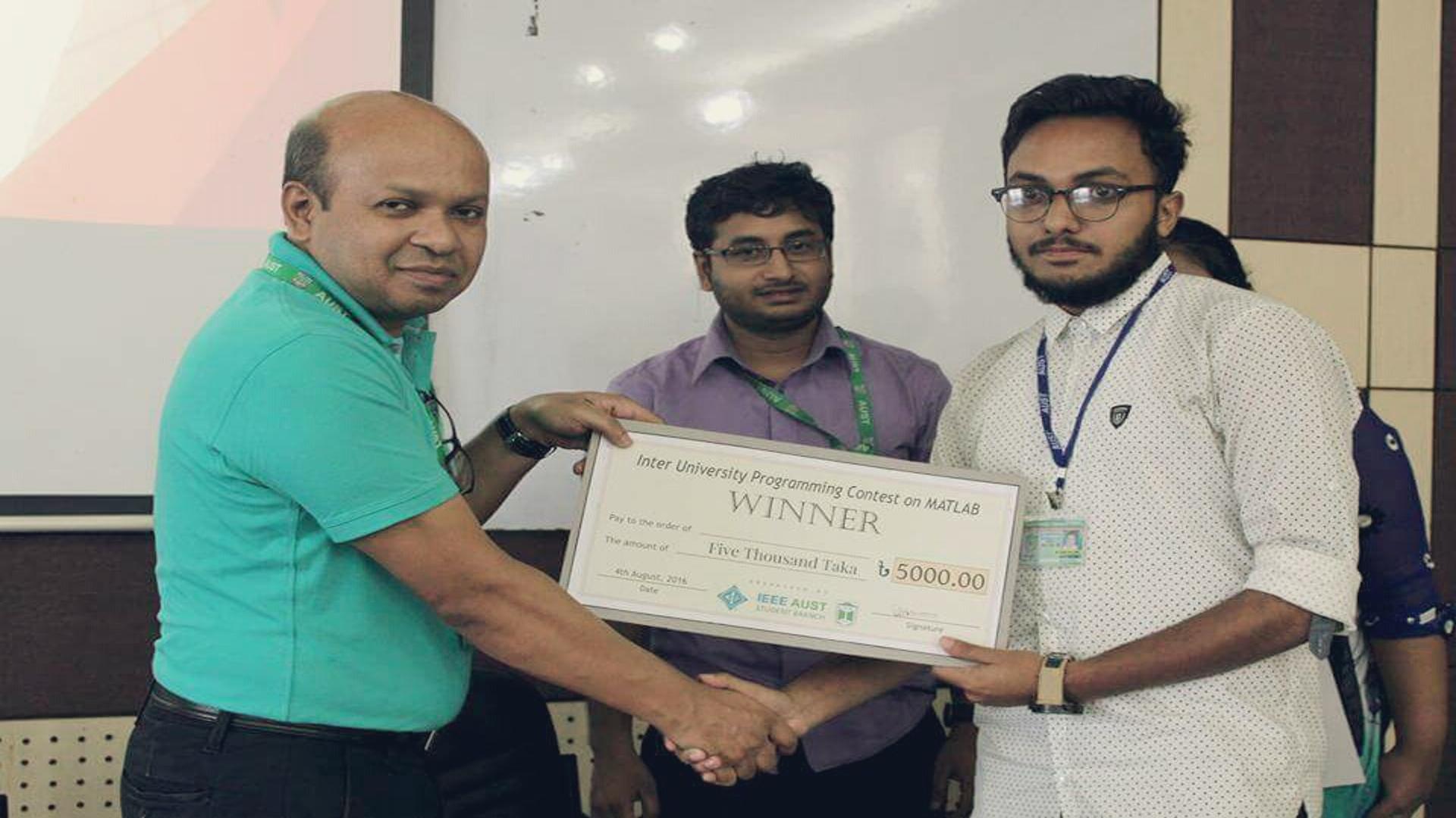 Champion in Inter University Programming Contest on Matlab; AUST IEEE Student Branch, 2016